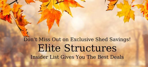 Join the Elite Structures Insider List for early access to new cabins, clearance sheds, and financing specials!